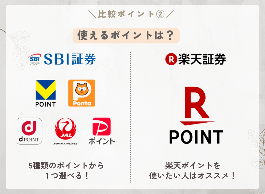 ・使えるポイントの選択肢が多い(SBI証券)