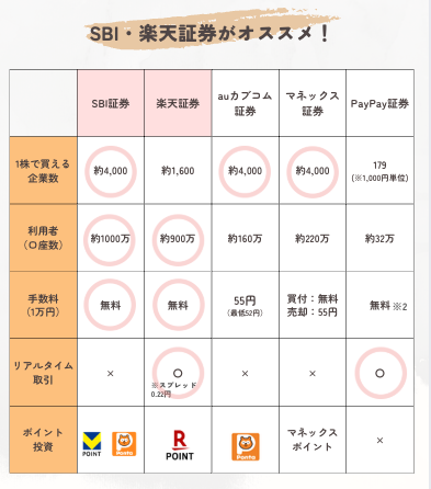 わたしはSBI証券でデビューして、今は楽天証券を使っているよ!